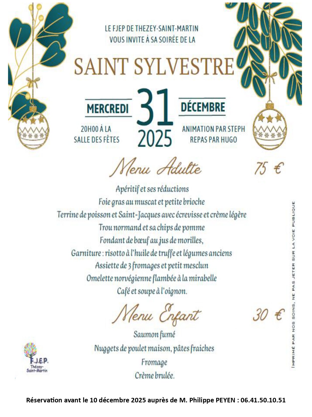 - Réservation avant le : 24/12/2025