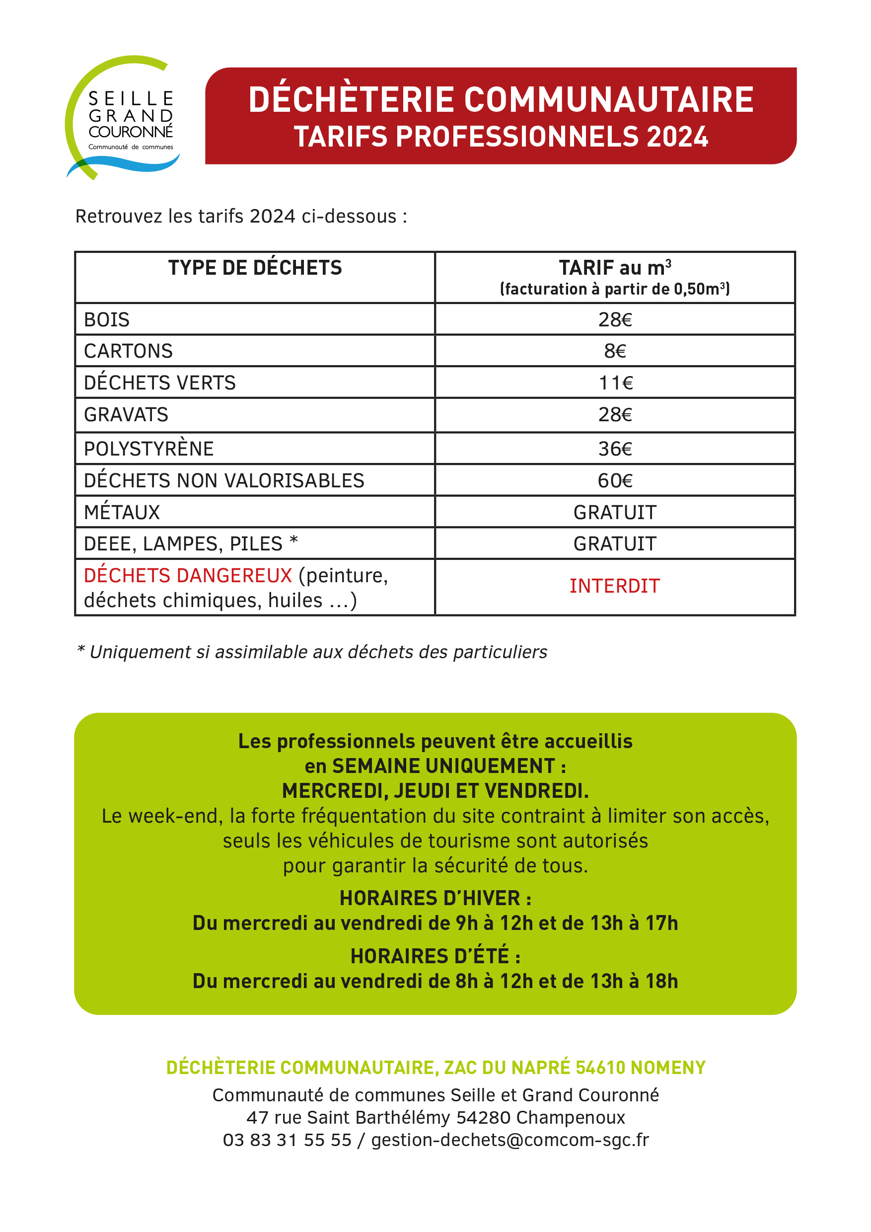 Tarifs 2024 – Pros – Déchèterie communautaire – 1,12 MoContact utile